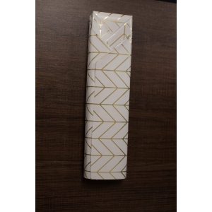 - Wrapping paper – To measure out your paper, make sure the box has enough room to fit across at least three times width-wise. Height-wise, the paper should just reach the top of the box on one side while folding over to halfway up the box on the other. Remember, it is better to have too much paper than too little! You can always cut more away.