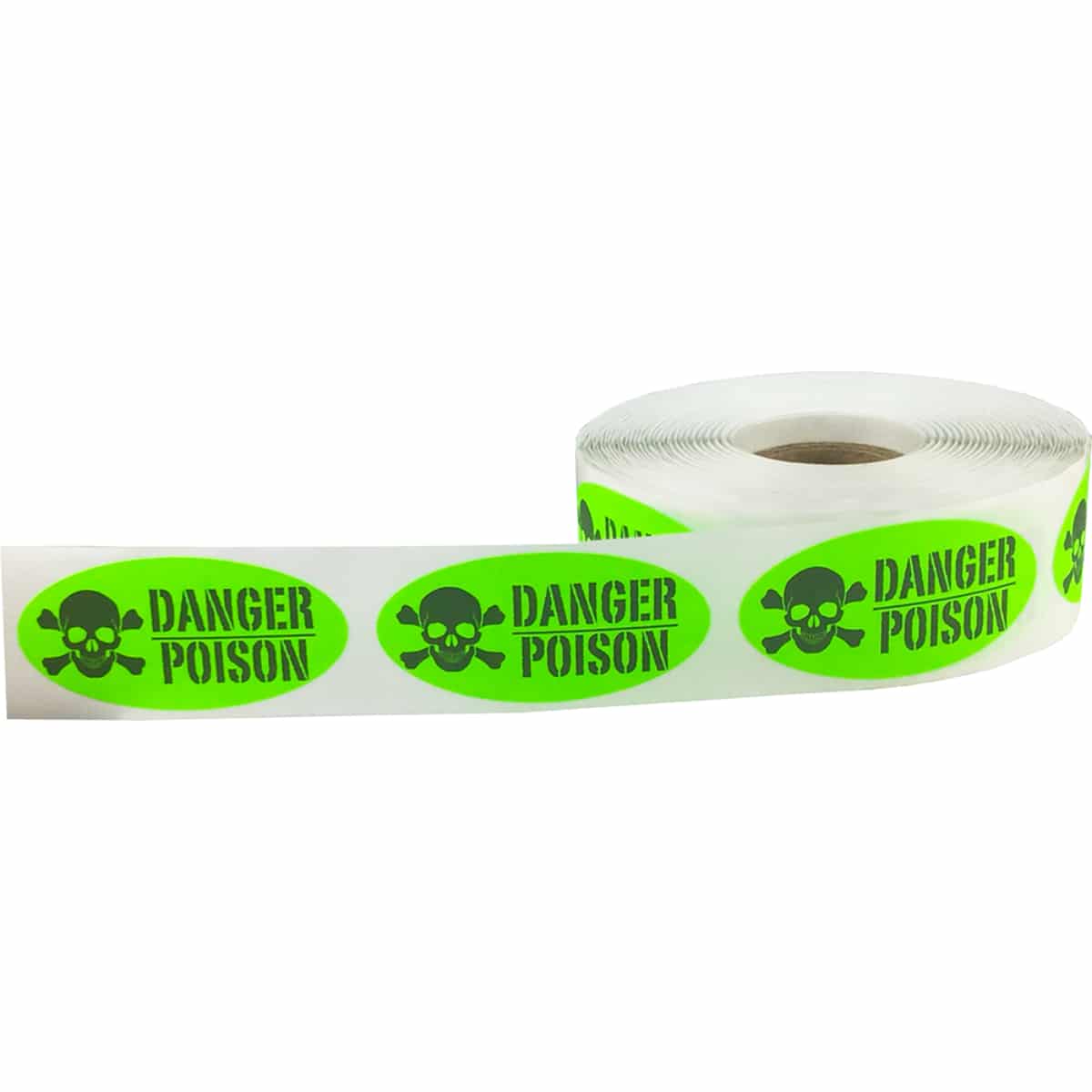 Fluorescent Green Danger Poison Control Stickers 1″ x 2″ Oval Quantity 500