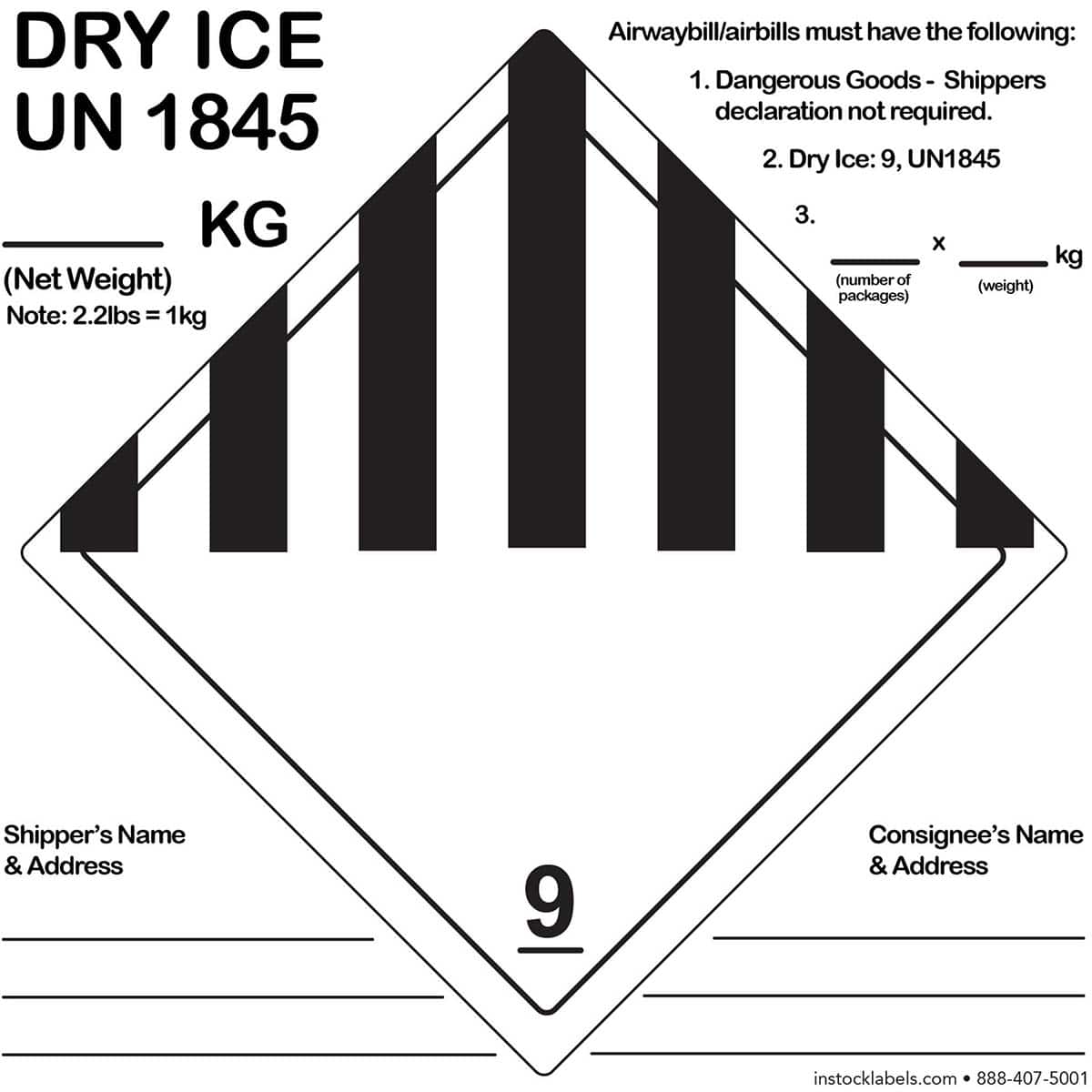 Dry Ice UN1845 Class 9 Warning Labels – Handle with Caution