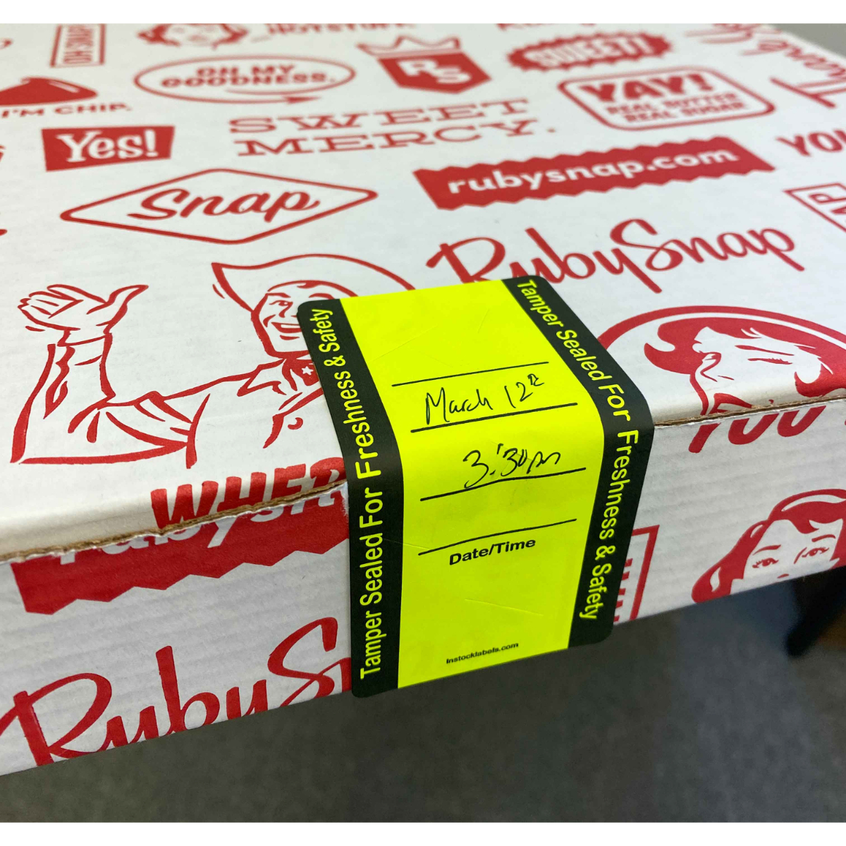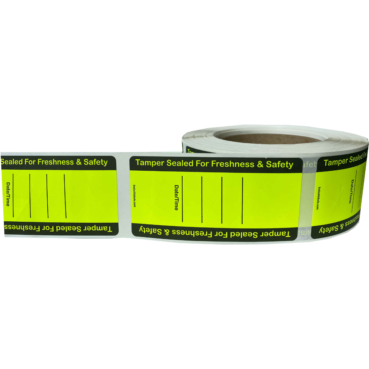 Introducing our fluorescent yellow matte paper Tamper Sealed for Freshness and Safety labels! These 2″ x 4″ labels are the perfect solution for sealing up food packaging for takeout and delivery orders.