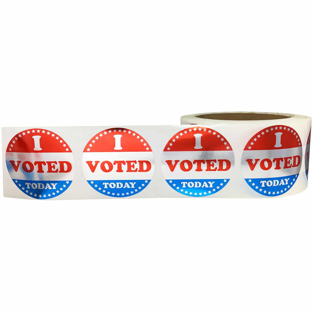 Voting is one of the most important acts you can do to get your voice heard. People like to show the world that they voted and had a say in an election. This large silver “I Voted Today” sticker is a great incentive to get people out to vote. They are 2-inches round and say “I Voted Today.” They are red, white, and blue with stars surrounding the outside. These stickers are great because they don’t have a political party aspect to them. That means they can work for all sorts of things. They don’t have to be just for government elections. Plus, who doesn’t love a patriotic theme no matter the election? Every roll comes with 500 stickers. They will last you a long time! No one will walk away disappointed that they can’t take a picture of themselves with a voting sticker. This large silver “I Voted Today” sticker is made from a metallic silver plastic that is water-resistant. The metallic material shines beautifully with the colors of the label. They also have a permanent adhesive. However, they do come off clothing and apparel without leaving any residue. They are fully apparel-safe. You can use these stickers on all sorts of materials as well. If you would like to see labels like this in action, be sure to check out our product video. We have tons of other voting stickers for you to scroll through as well!