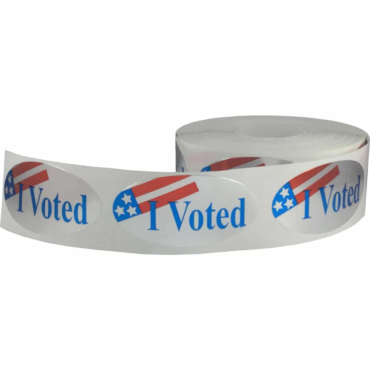 Silver I Voted Stickers Plastic Oval 1″ x 2″ QTY 500