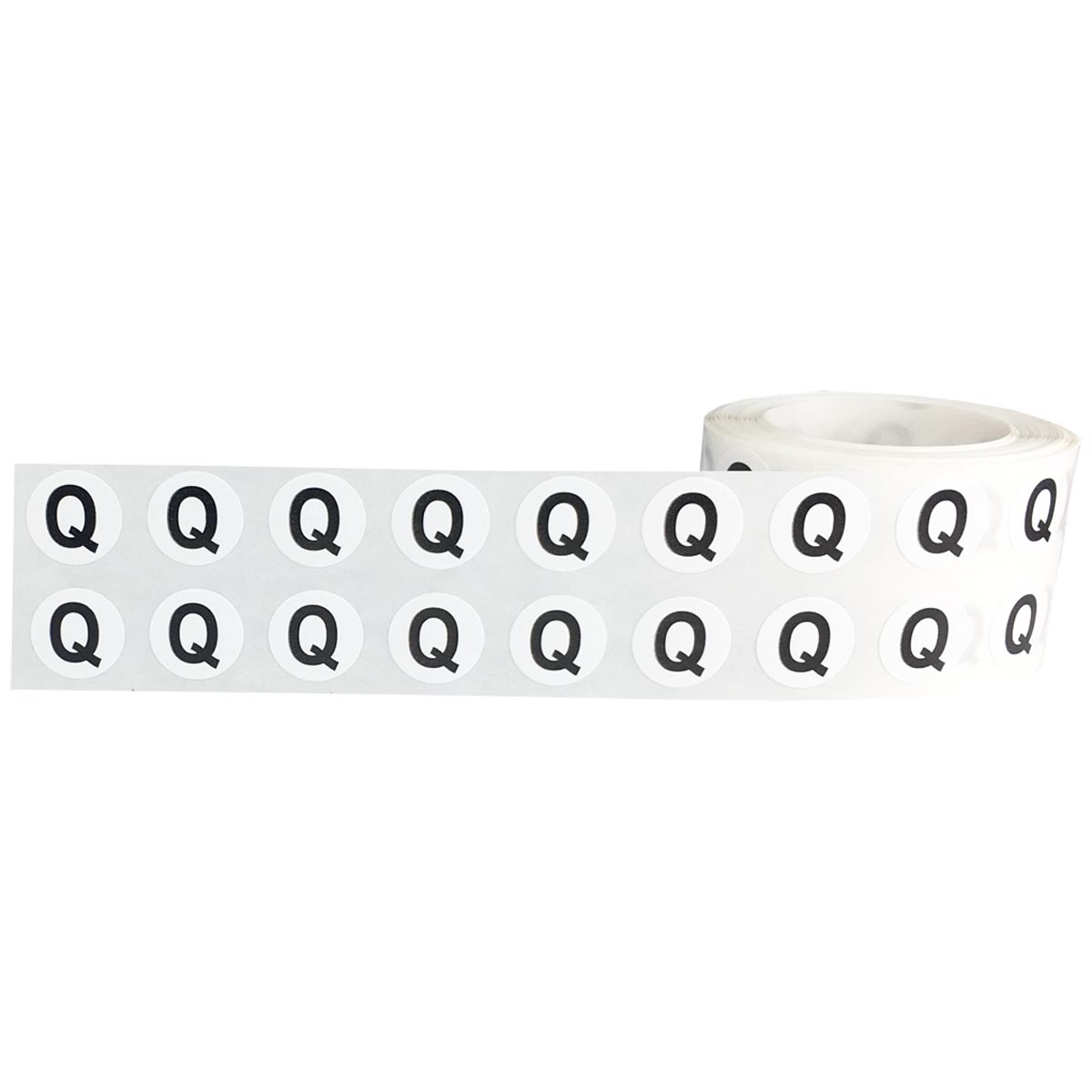 Small Letter Q Stickers 1/2″ Round QTY 1,000