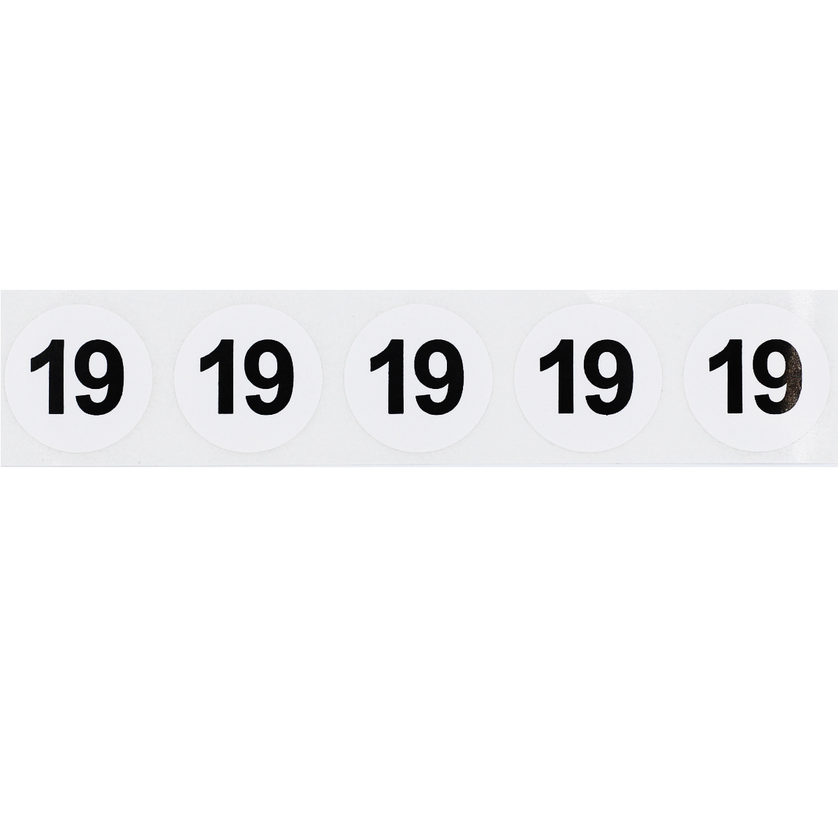 These are our 3/4 inch round number stickers. The 3/4 inch size is measured in diameter. This is the exact size of a penny. There are 500 adhesive number stickers on one roll, though we do add about 15 extra. Made of white semi-gloss paper, they have a standard permanent adhesive and will stick to most surfaces. They can be removed depending on what they are applied to and for how long they’ve been there. The longer they stay, the more likely they may leave some residue.