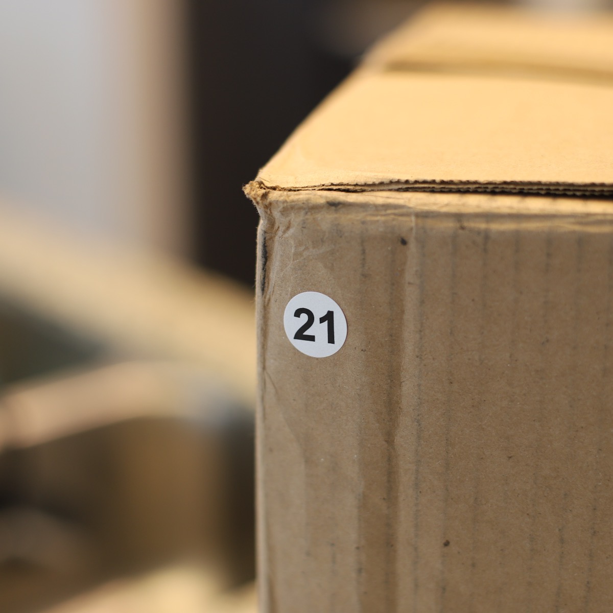 These are our 3/4 inch round number stickers. The 3/4 inch size is measured in diameter. This is the exact size of a penny. There are 500 adhesive number stickers on one roll, though we do add about 15 extra. Made of white semi-gloss paper, they have a standard permanent adhesive and will stick to most surfaces. They can be removed depending on what they are applied to and for how long they’ve been there. The longer they stay, the more likely they may leave some residue.